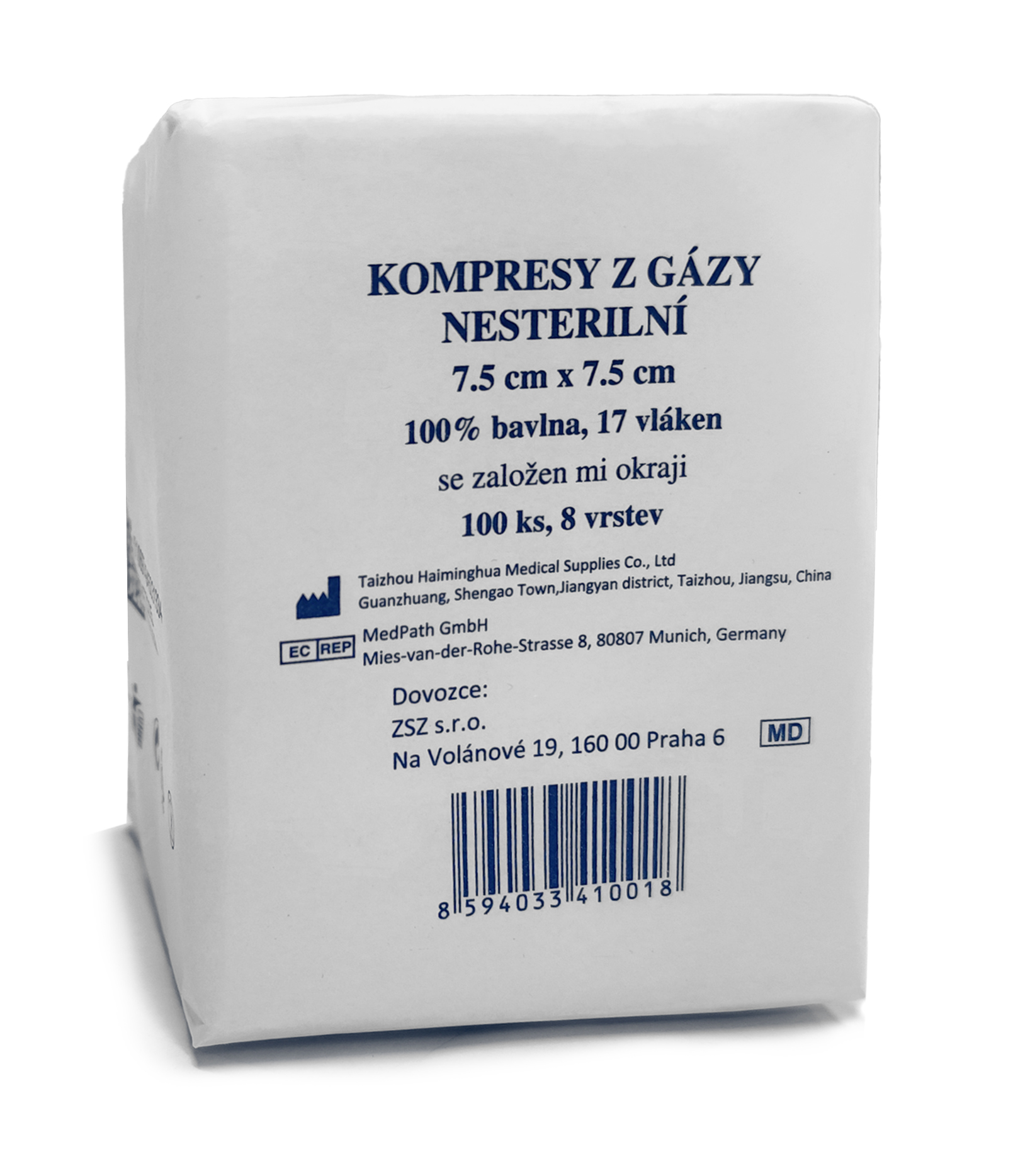 - Kompresy nesterilní 7.5 x 7.5, 8 vrstev